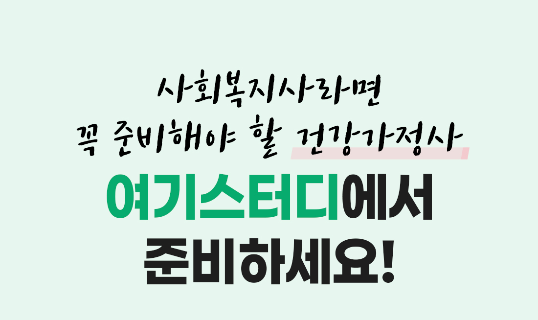 건강가정사는 일시적인 트렌드가 아닌 필수 스펙 입니다. 사회복지현장에서의 실무경쟁력, 여기스터디에서 빠르게 준비하세요!