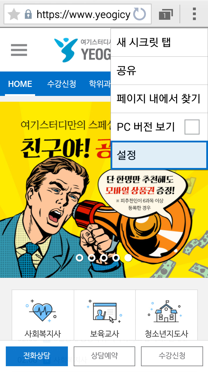안드로이드 (Android) : 네이버 브라우저 사용 권장