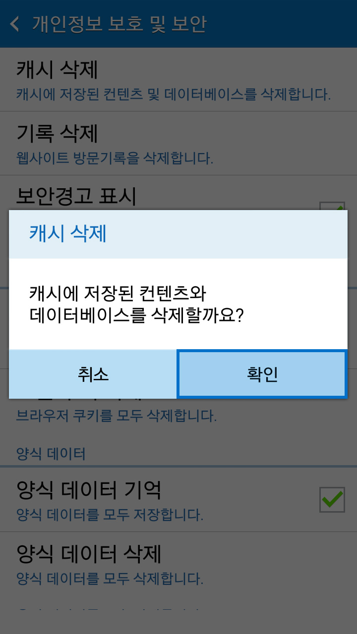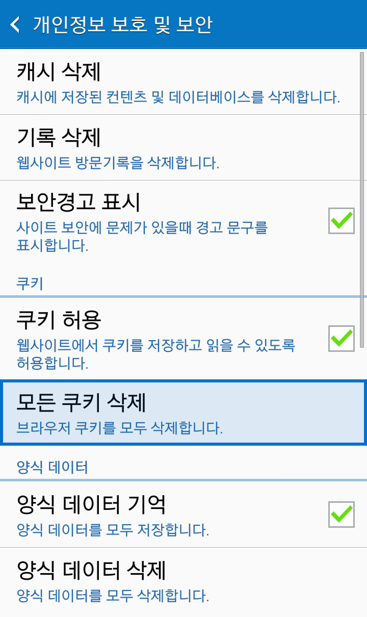 STEP 05. [모든 쿠키삭제] - [확인] 클릭