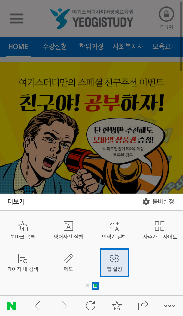 안드로이드 (Android) : 네이버 브라우저 사용 권장
