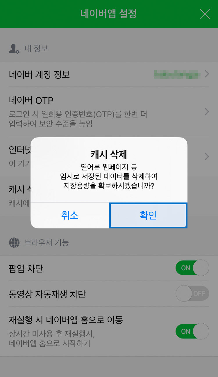 STEP 05. [캐시삭제] - [확인] 클릭