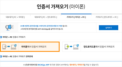 ¡Ø (ÁÖ)Çѱ¹Á¤º¸ÀÎÁõ KICASign+ APP ¿Ü ´Ù¸¥ ÀÎÁõ¼ APP¿¡¼´Â ³»º¸³»±â / °¡Á®¿À±â¸¦ ÇÏ½Ç ¼ö ¾ø½À´Ï´Ù.